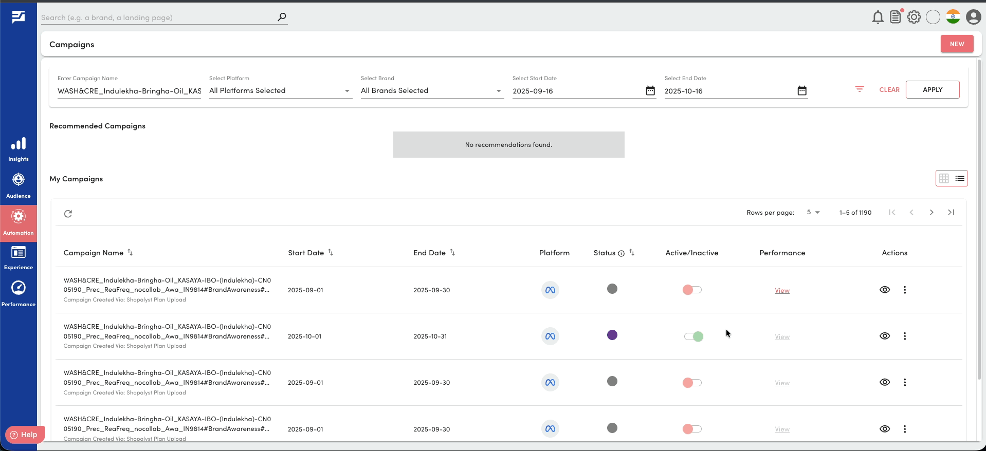 The Campaign Reports tab provides you with access to campaign-specific reports running across the platforms. additional metrics can be fetched by applying filters by brand/platform.