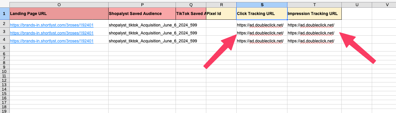 Enter your Click Tracking and Impression Tracking URLs in the corresponding   columns of the input file.
