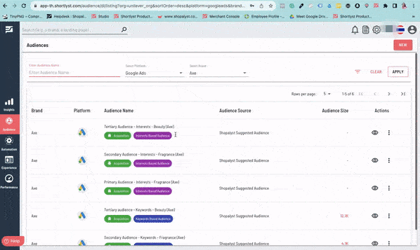 Shopalyst presents various types of recommended audiences: Interest, keyword, Behaviour & Hashtag-based audiences to enhance user convenience that introducing a novel tag on the listing screen. You can find the tagging function which helps to identify the Audience level (2P, 3P) & targeting segments (Interests, behaviors, hashtags, keywords, and in-market affinity). This tag serves the purpose of conveniently identifying the audience types directly from the listing screen itself.