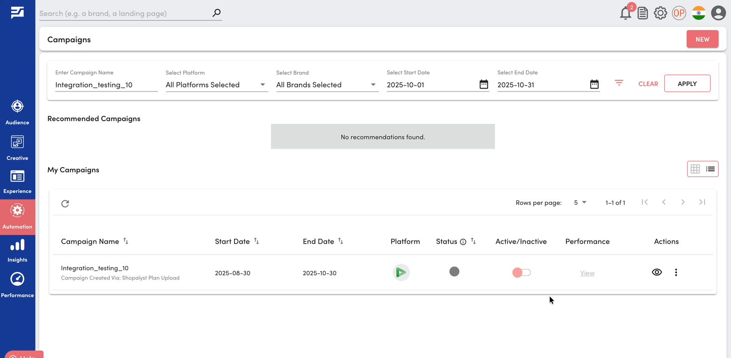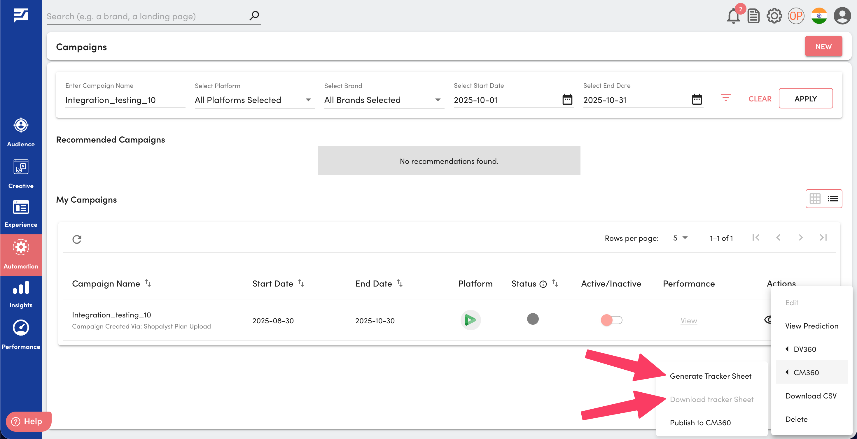 After successfully uploaded the input sheet ,Click on the three dots under the "Action" option to publish the campaign. You can also download the uploaded media plan for review before proceeding with the publish.